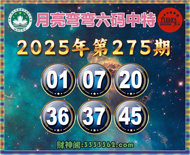 275期:【月亮弯弯】 😍六码中特😍【01.07.20.36.37.45】开:45