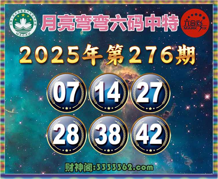 276期:【月亮弯弯】 😍六码中特😍【07.14.27.28.38.42】开:00准