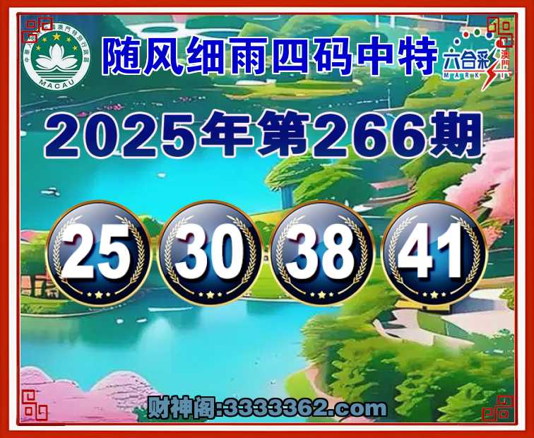 266期:【随风细雨】 🏄‍♀️四码中特🏄‍♀️【25.30.38.41】开:41