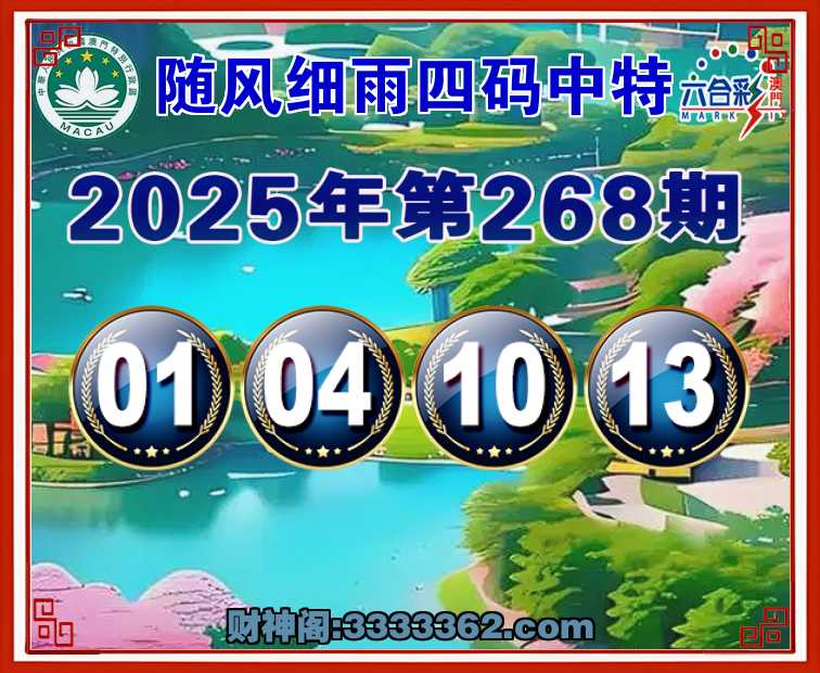 268期:【随风细雨】 🏄‍♀️四码中特🏄‍♀️【01.04.10.13】开:10