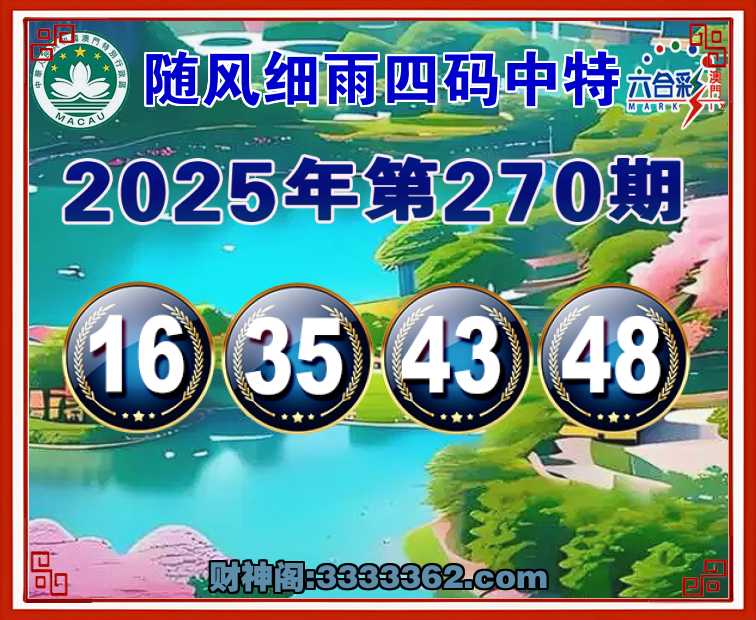 270期:【随风细雨】 🏄‍♀️四码中特🏄‍♀️【16.35.43.48】开:35