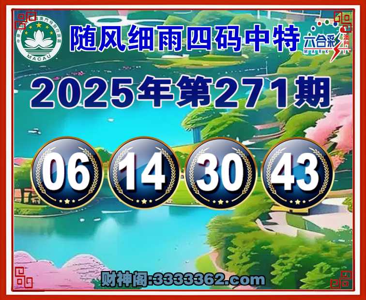 271期:【随风细雨】 🏄‍♀️四码中特🏄‍♀️【06.14.30.43】开:06
