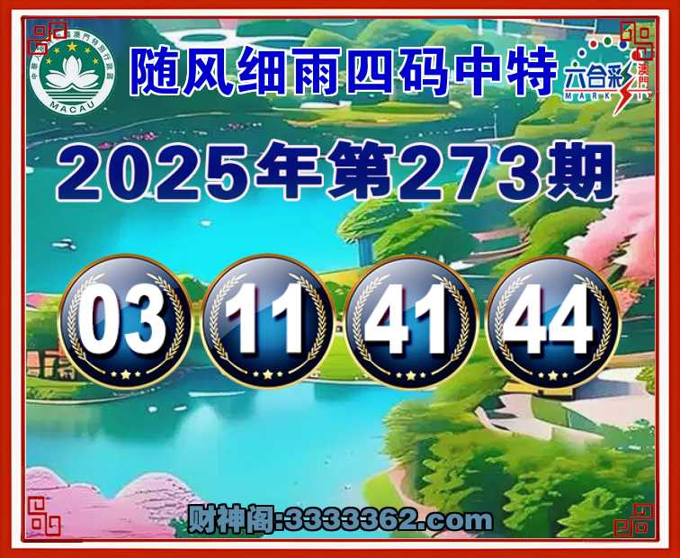 273期:【随风细雨】 🏄‍♀️四码中特🏄‍♀️【03.11.41.44】开:04