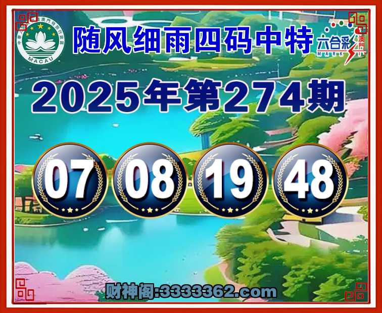274期:【随风细雨】 🏄‍♀️四码中特🏄‍♀️【07.08.19.48】开:00准
