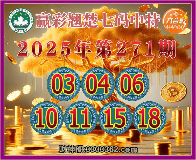 271期: 🍧『赢彩翘楚』 🍧七码中特🍧【03.04.06.10.11.15.18】开:06