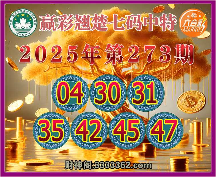 273期: 🍧『赢彩翘楚』 🍧七码中特🍧【04.30.31.35.42.45.47】开:04