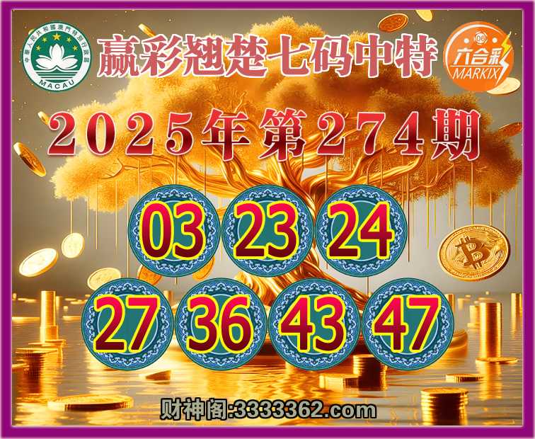 274期: 🍧『赢彩翘楚』 🍧七码中特🍧【03.23.24.27.36.43.47】开:00准