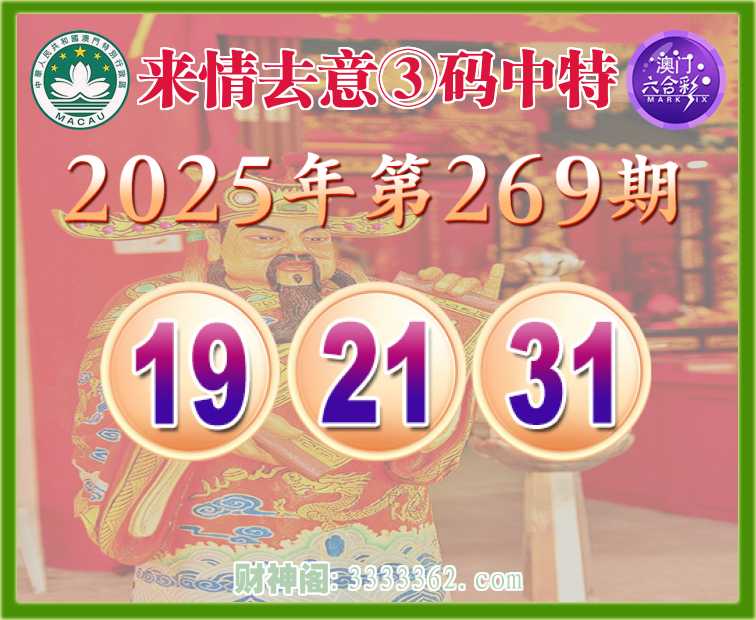 269期: ☺️《来情去意》 ☺️③码中特☺️【19.21.31】开:31