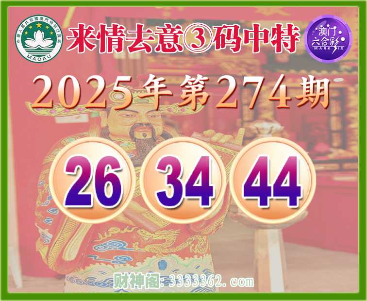 274期: ☺️《来情去意》 ☺️③码中特☺️【26.34.44】开:44