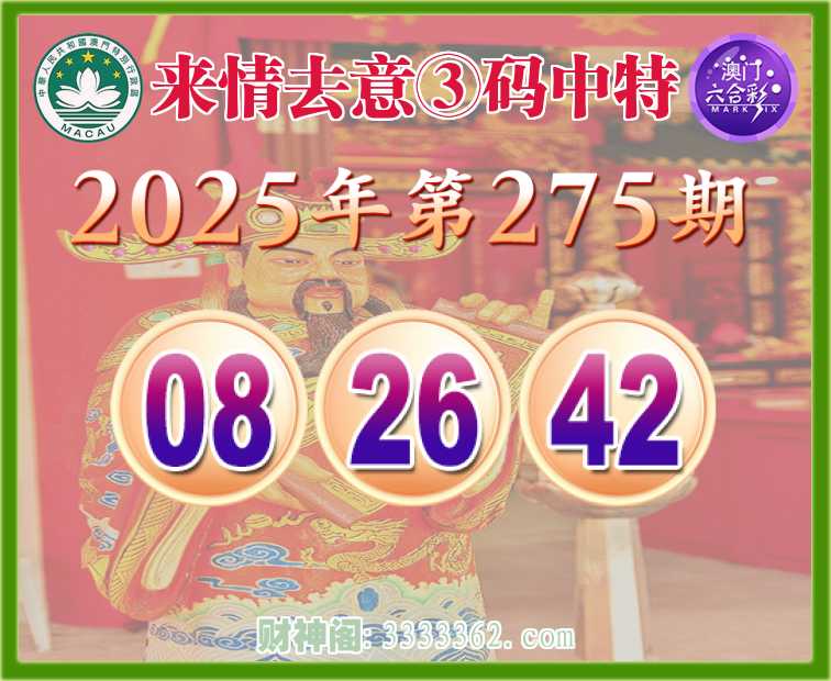 275期: ☺️《来情去意》 ☺️③码中特☺️【08.26.42】开:00准