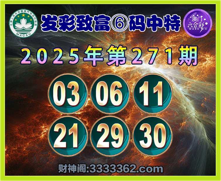 271期:【发彩致富】 🍖 ⑥码中特 🍖【03.06.11.21.29.30】开:06