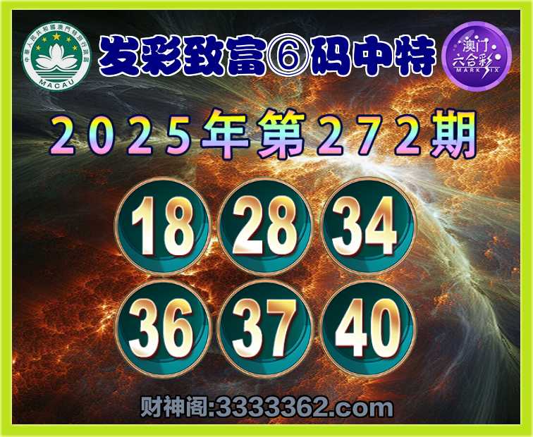 272期:【发彩致富】 🍖 ⑥码中特 🍖【18.28.34.36.37.40】开:36