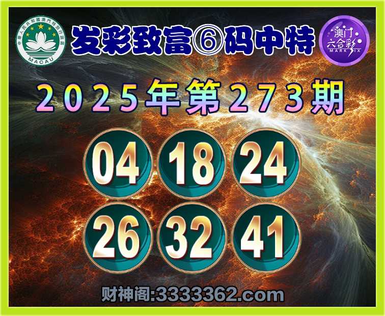 273期:【发彩致富】 🍖 ⑥码中特 🍖【04.18.24.26.32.41】开:04