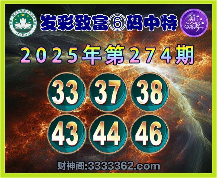 274期:【发彩致富】 🍖 ⑥码中特 🍖【33.37.38.43.44.46】开:44