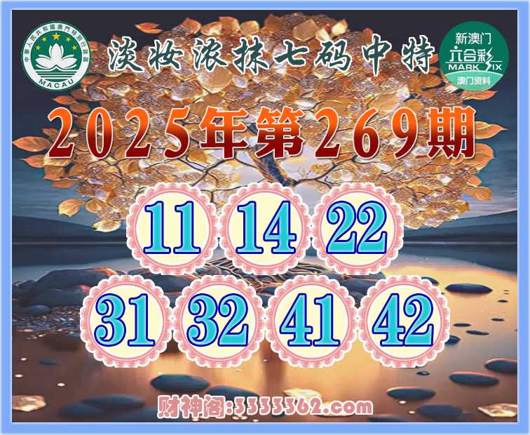 269期: 🧶《淡妆浓抹》 🧶七码中特🧶【11.14.22.31.32.41.42】开:31