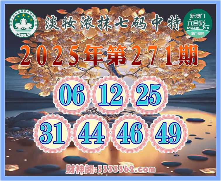271期: 🧶《淡妆浓抹》 🧶七码中特🧶【06.12.25.31.44.46.49】开:06