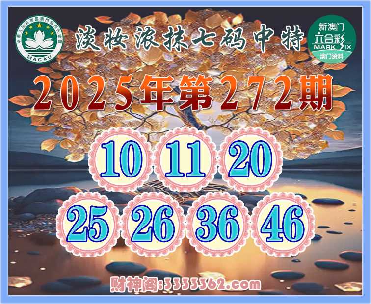 272期: 🧶《淡妆浓抹》 🧶七码中特🧶【10.11.20.25.26.36.46】开:36
