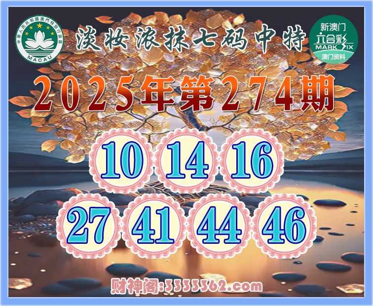 274期: 🧶《淡妆浓抹》 🧶七码中特🧶【10.14.16.27.41.44.46】开:44