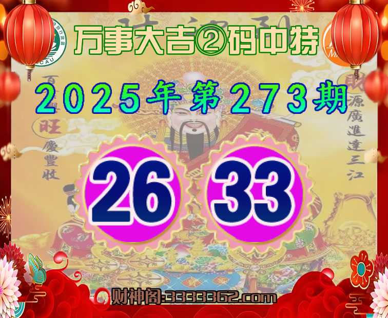 273期: 🥠『万事大吉』 🥠②码中特🥠【26.33】开:00准