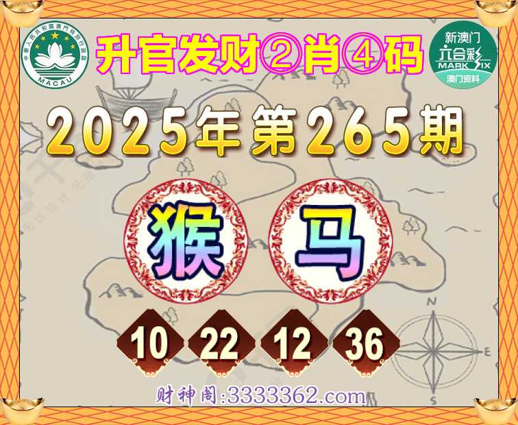 265期: 🎪『升官发财』 🎪②肖④码🎪【马】【10.22.12.36】开:猴10