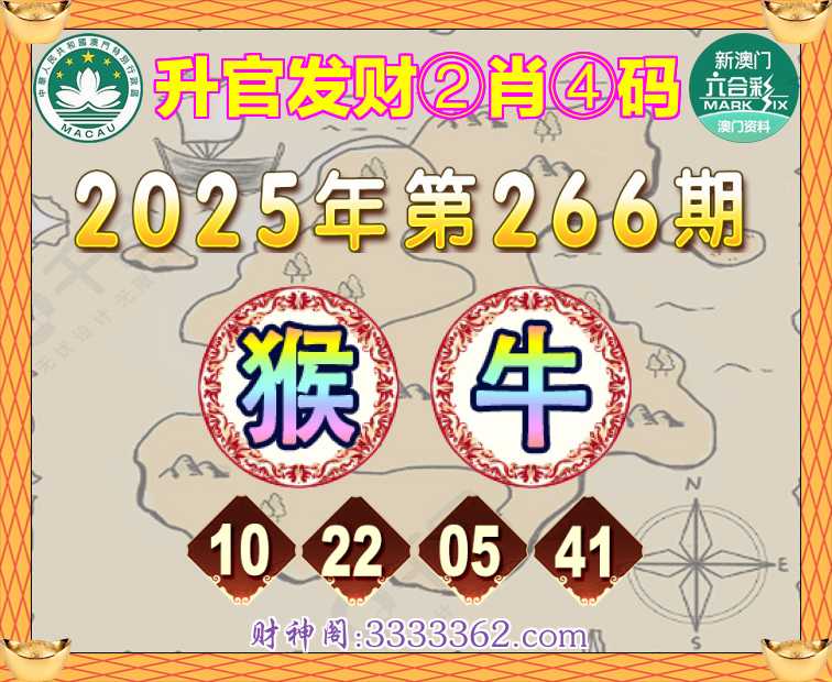 266期: 🎪『升官发财』 🎪②肖④码🎪【猴】【10.22.05.41】开:牛41