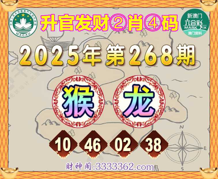 268期: 🎪『升官发财』 🎪②肖④码🎪【龙】【10.46.02.38】开:猴10