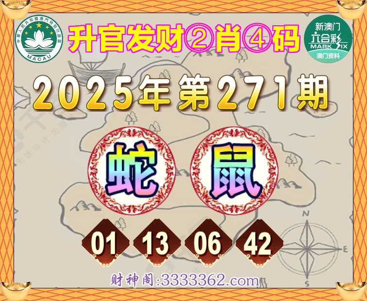 271期: 🎪『升官发财』 🎪②肖④码🎪【蛇】【01.13.06.42】开:鼠06