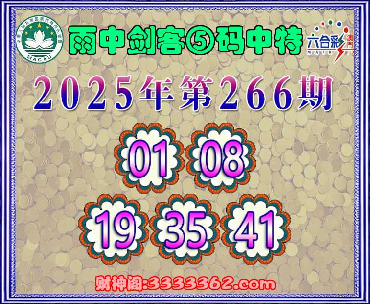 266期:〖雨中剑客〗 ♠️⑤码中特♠️【01.08.19.35.41】开:41
