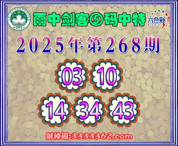 268期:〖雨中剑客〗 ♠️⑤码中特♠️【03.10.14.34.43】开:10