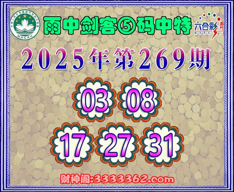 269期:〖雨中剑客〗 ♠️⑤码中特♠️【03.08.17.27.31】开:31
