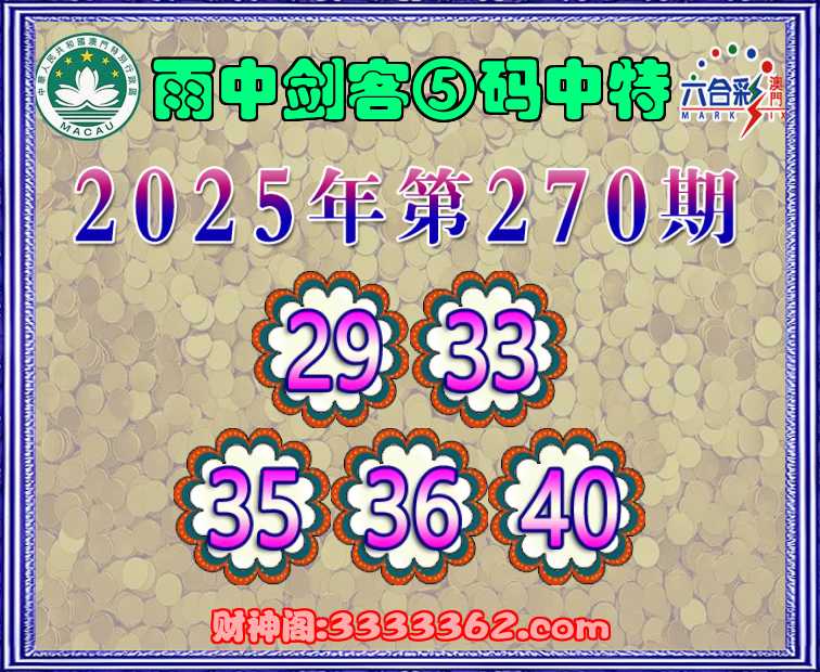270期:〖雨中剑客〗 ♠️⑤码中特♠️【29.33.35.36.40】开:35