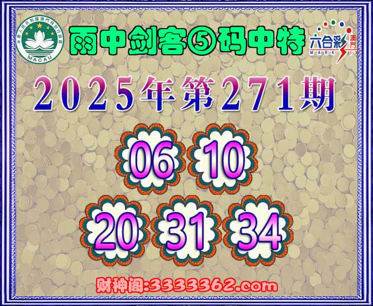 271期:〖雨中剑客〗 ♠️⑤码中特♠️【06.10.20.31.34】开:06