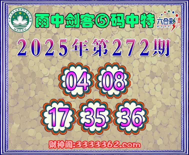 272期:〖雨中剑客〗 ♠️⑤码中特♠️【04.08.17.35.36】开:36