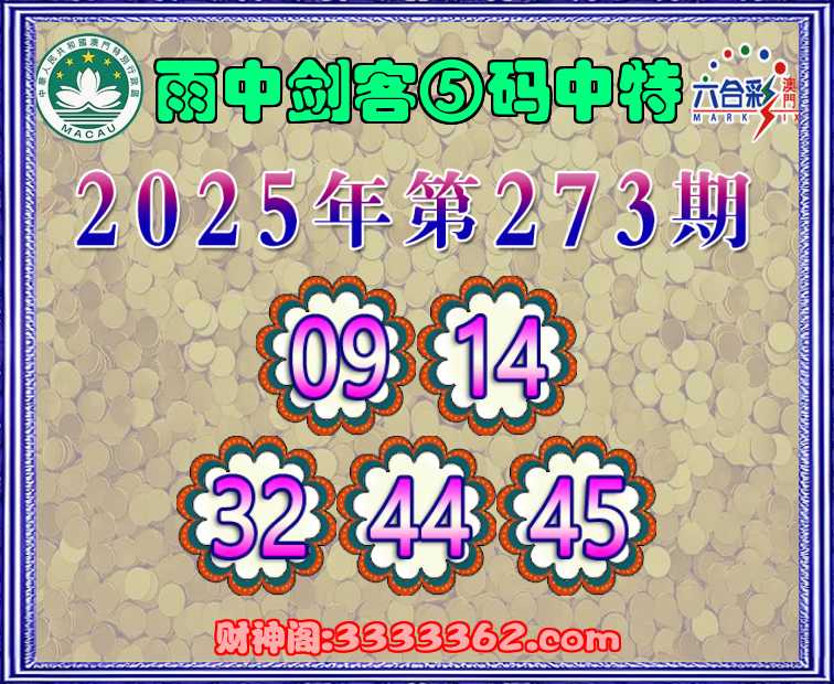 273期:〖雨中剑客〗 ♠️⑤码中特♠️【09.14.32.44.45】开:00准