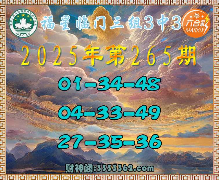 265期: 🥫『福星临门』 🥫三组3中3🥫