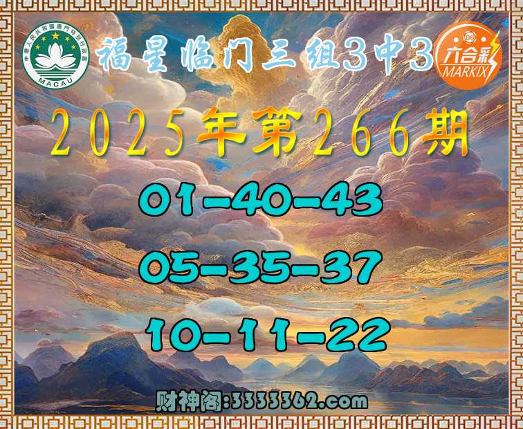 266期: 🥫『福星临门』 🥫三组3中3🥫