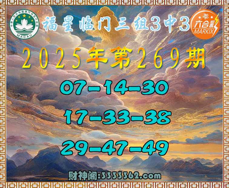 269期: 🥫『福星临门』 🥫三组3中3🥫