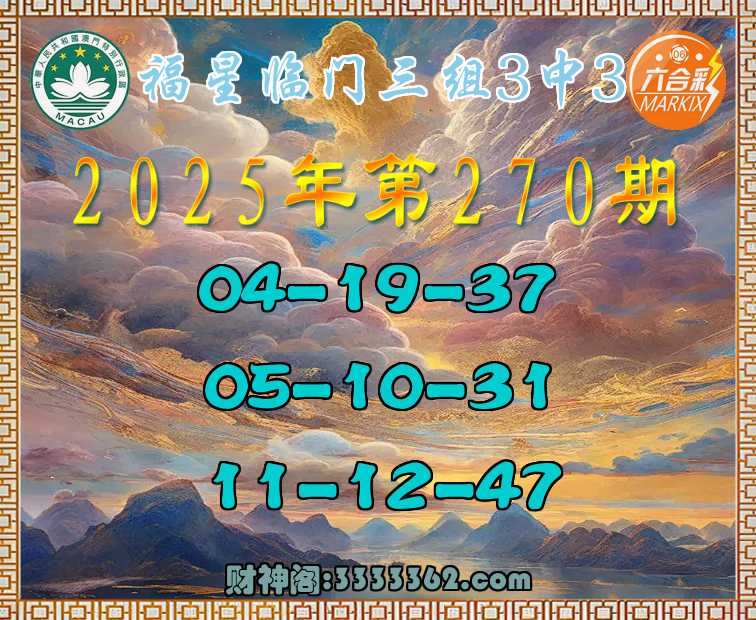 270期: 🥫『福星临门』 🥫三组3中3🥫