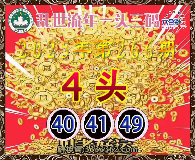 266期:《乱世流年》 🥬一头三码🥬【4头主:40.41.49】开:牛41