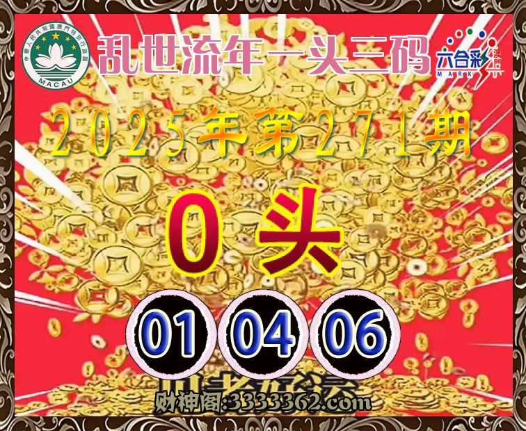 271期:《乱世流年》 🥬一头三码🥬【0头主:01.04.06】开:鼠06