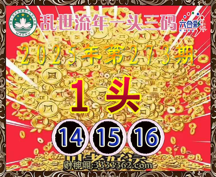 273期:《乱世流年》 🥬一头三码🥬【1头主:14.15.16】开:00准