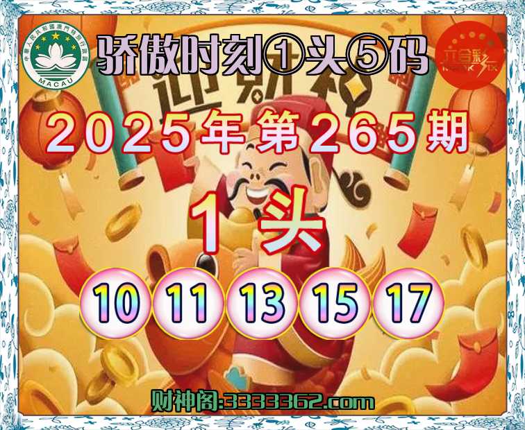 265期:【骄傲时刻】 ⛩️①头⑤码⛩️【1头主:10.11.13.15.17】开:10