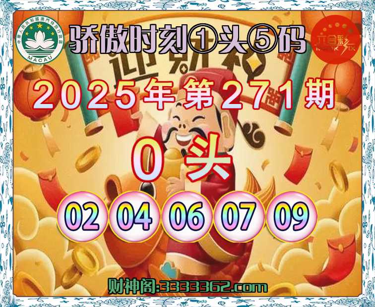 271期:【骄傲时刻】 ⛩️①头⑤码⛩️【0头主:02.04.06.07.09】开:06