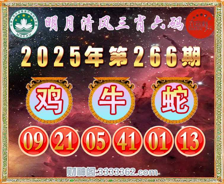 266期:《明月清风》 🚣三肖六码🚣【鸡蛇】开:牛41