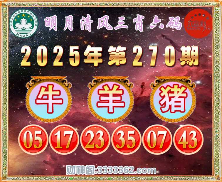 270期:《明月清风》 🚣三肖六码🚣【牛猪】开:羊35