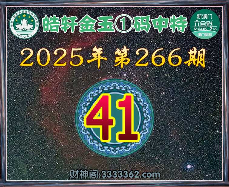 266期:《皓轩金玉》 🍏①码中特🍏【41】开:41