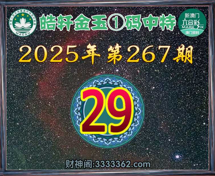 267期:《皓轩金玉》 🍏①码中特🍏【29】开:29