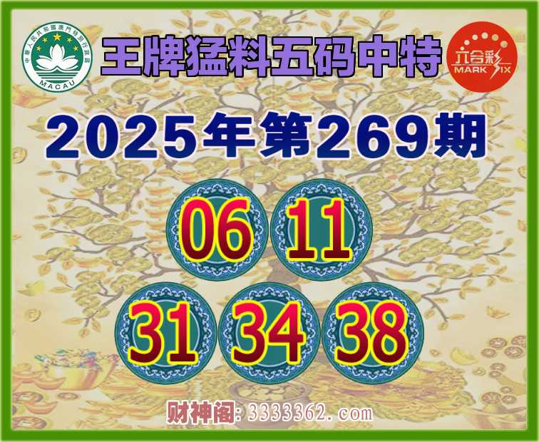 269期:《王牌猛料》 💎五码中特💎【06.11.31.34.38】开:31
