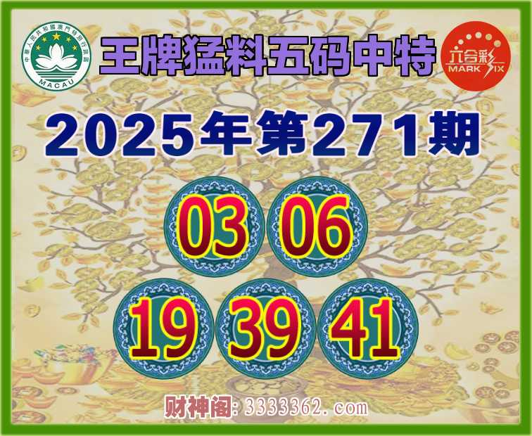 271期:《王牌猛料》 💎五码中特💎【03.06.19.39.41】开:06