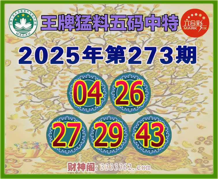 273期:《王牌猛料》 💎五码中特💎【04.26.27.29.43】开:04
